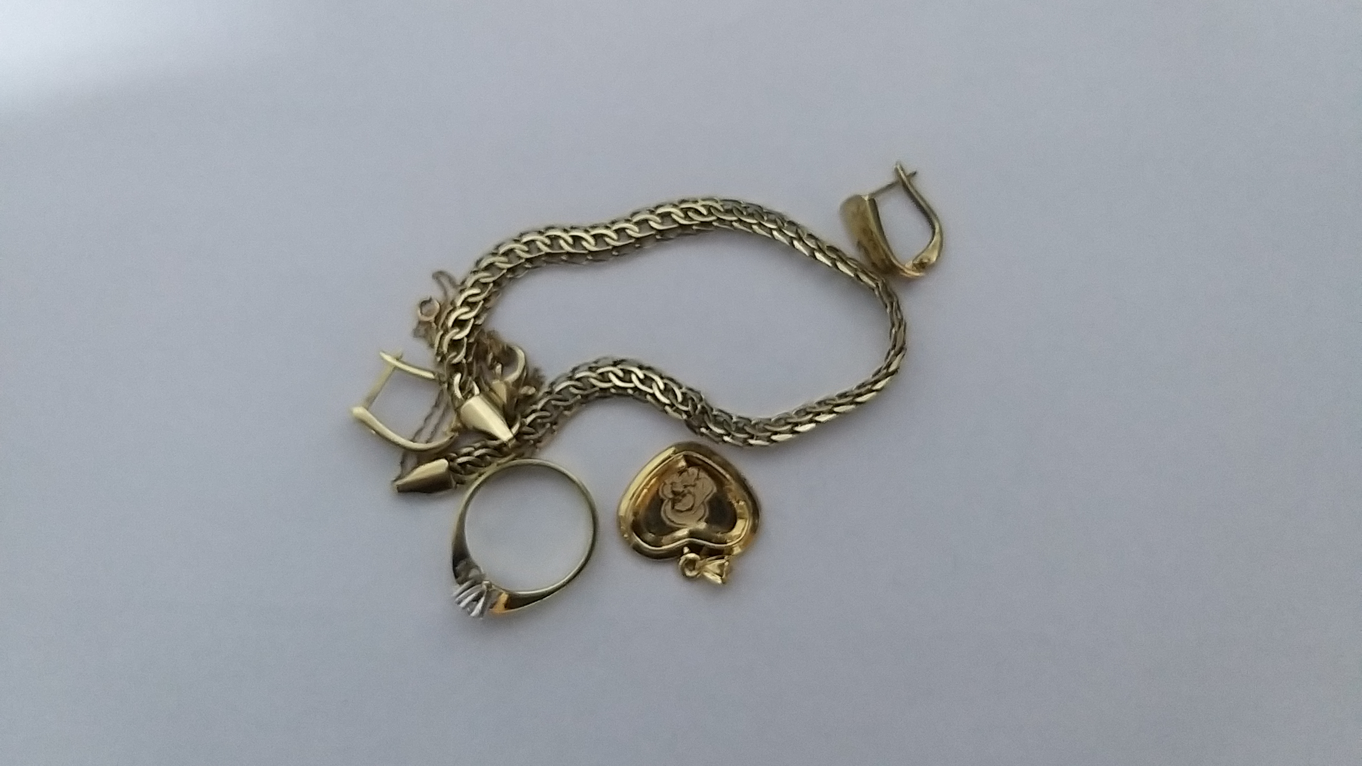 10 | ՎՏԲ 28 - ՎՏԲ_Ս_021_0413 - ՎՏԲ_Ս_021_0416, Աճուրդը՝ դասական եղանակով, 05.05.2021թ.-ից | Վաճառված (05-05-2021) | Ոսկյա զարդեր – 17 զարդ (մատանի, կախազարդ, խաչ, շղթա, թևնոց, ջարդոն), ընդհանուր 129.7գր. քաշով, որից 583 հարգի դեղին և սպիտակ ոսկի 129.7գր.: | հատ | 17 | 2240620 | 2240620 | - | ||